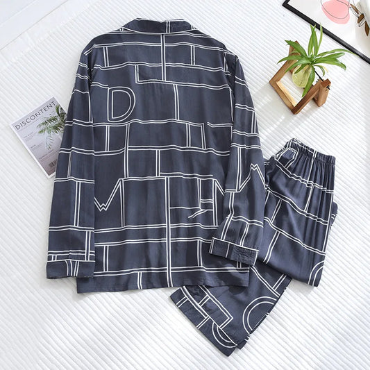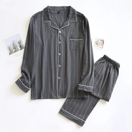 Minimalist Viscose Long Sleeve Pants Men Pajama Set