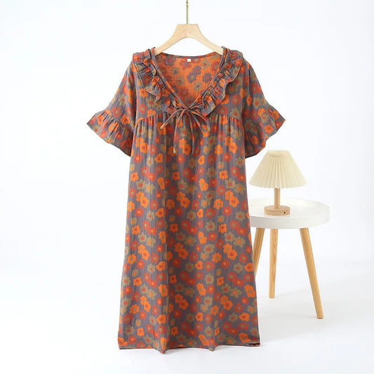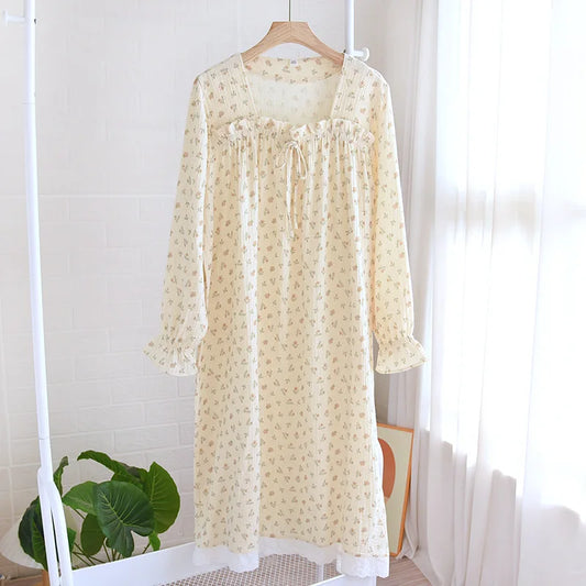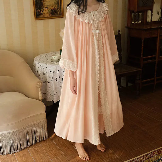 Vintage-Inspired Lace V-neck Cotton Nightgown