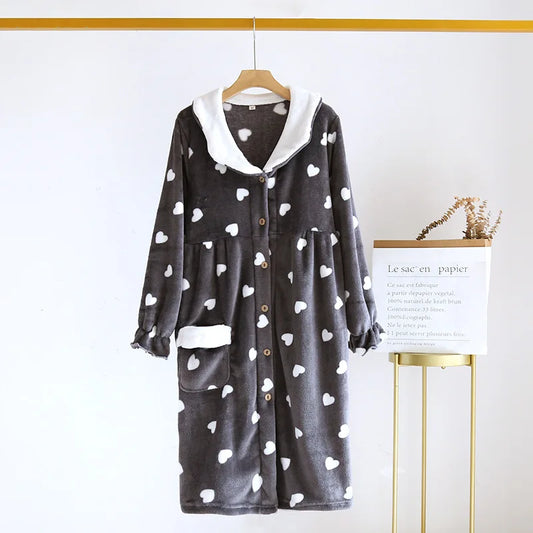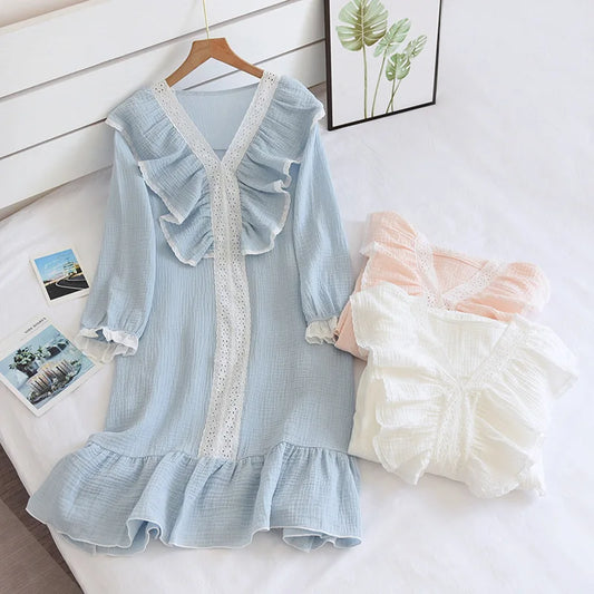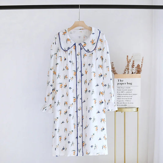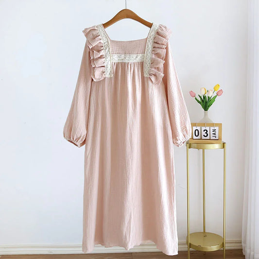 Cozy Thermal Pastel Cotton Long-Sleeve Nightgown