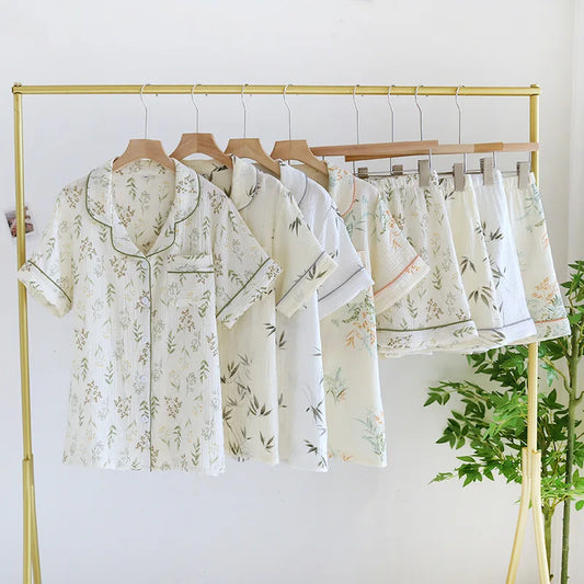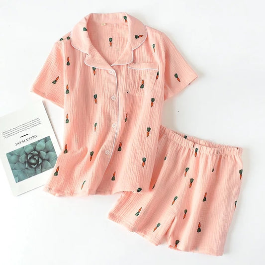 Breathable Cotton Short Sleeve Shorts Pajama Set