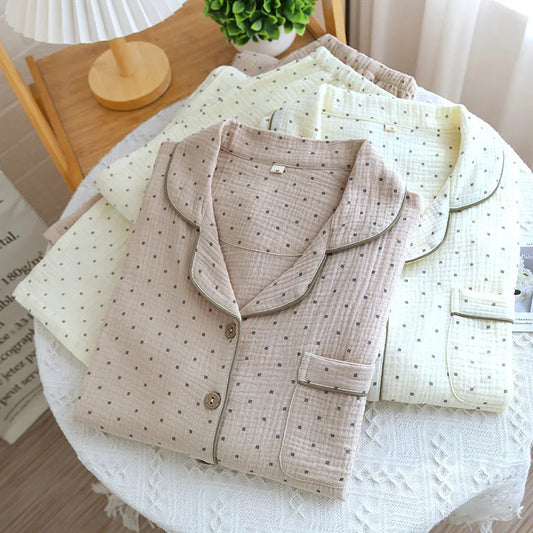 Minimalist Dotted Cotton Long Sleeve Pants Pajama Set