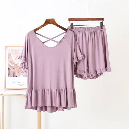 Casual Comfort Modal Ruffle Sleeve Loungewear Set