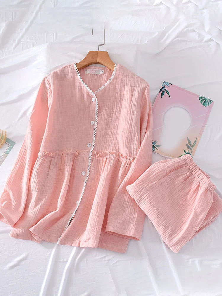 Japanese Inspired Cotton Long Sleeve Pants Pajama Set